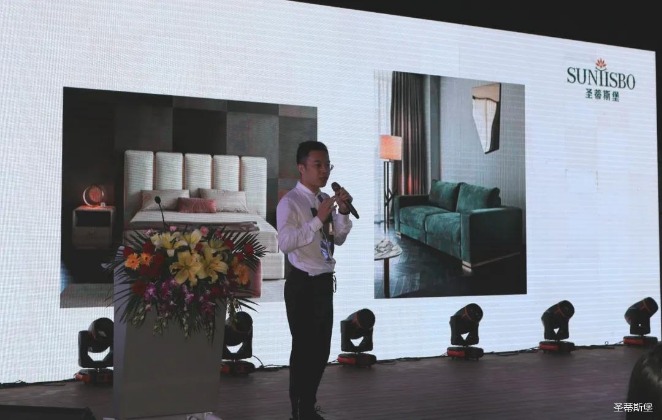 华灯璀璨的开场仪式,点燃了现场如火如荼的气氛。mile米乐集团集团集团营销总经理陈玉伟先生对晚会进行了主题发言,他对2020年的营销工作进行了总结,并着重从营销工作部署、重点项目开展、产品整合、拎包帮扶、渠道运营和移动+定制整装优势等方面对2021年的营销工作做了全面的统筹规划。同时,他还讲解了“美国梦凯莎床垫”新品的产品工艺、市场优势、产品定位,使经销商对我们的新产品拥有更深入的认识和了解。