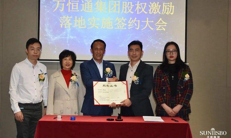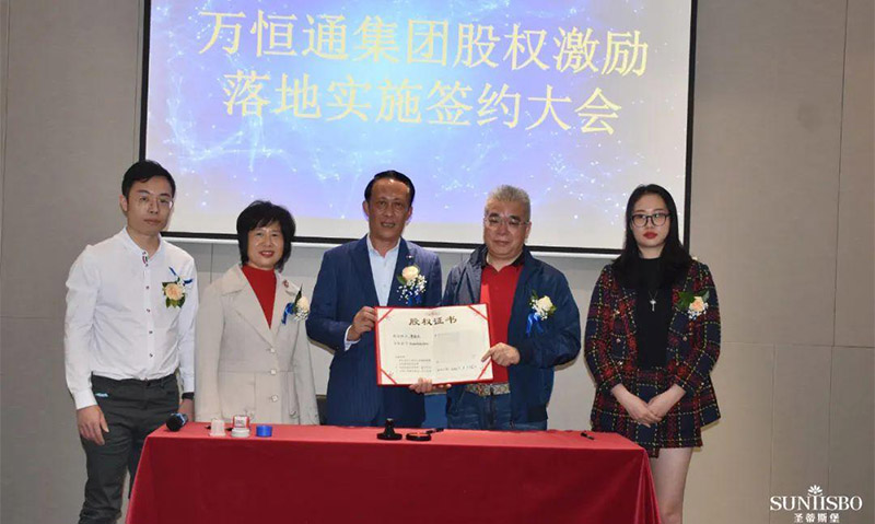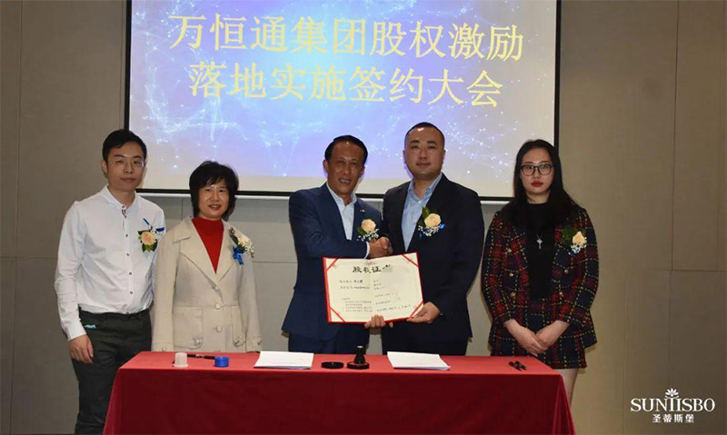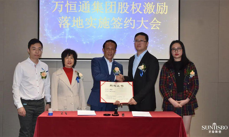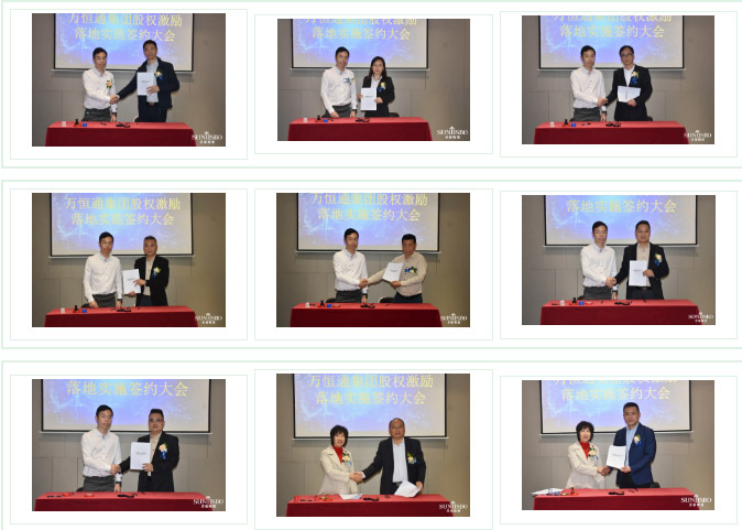 mile米乐集团集团集团执行董事及法人代表王浩基先生正式为第一期六位虚拟受限股股东授予荣誉证书并签订股权分配协议。
